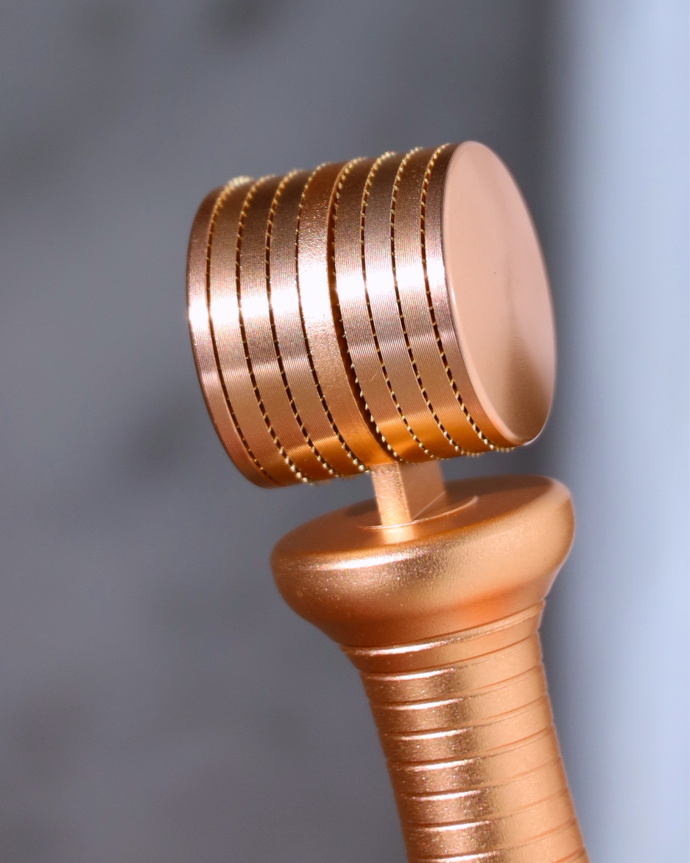 Ergonomic gold aluminium handle: luxe, balanced and comfortable to use